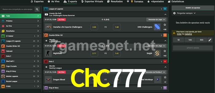 A aposta ChC777 oferece aos jogadores a experiência mais conveniente de apostas em eSports!
